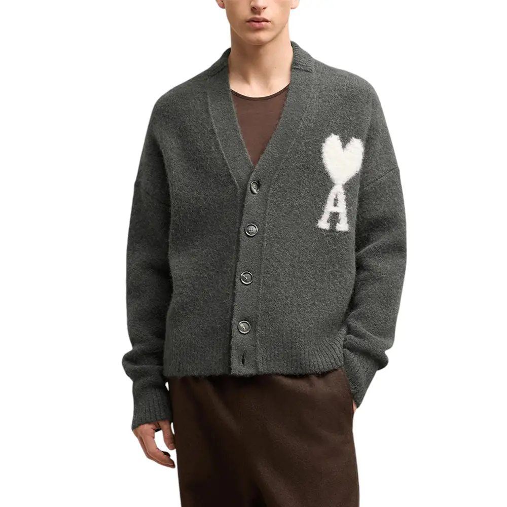 【AMI Paris】Ami de COEUR CLOUDY カーディガン AMI Paris Off White Ami De Coeur Cloudy Wool Cardigan Dark Grey